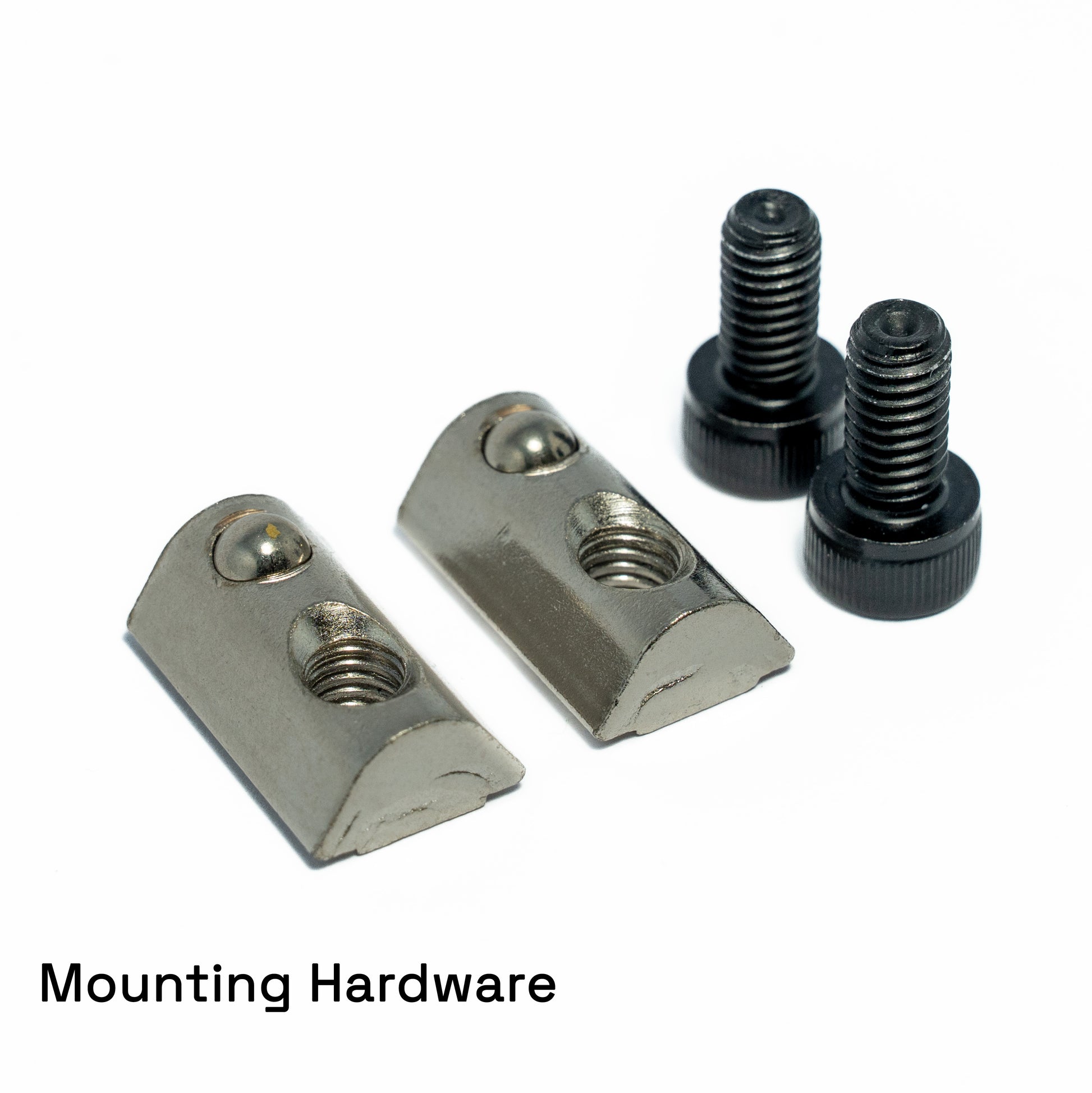 Mounting hardware for 20 series profile (i.e., 8020) is included. This consists of 2x M6 bolts and 2x M6 T-Nuts. A 4mm hex key is required for installation but is not included.
